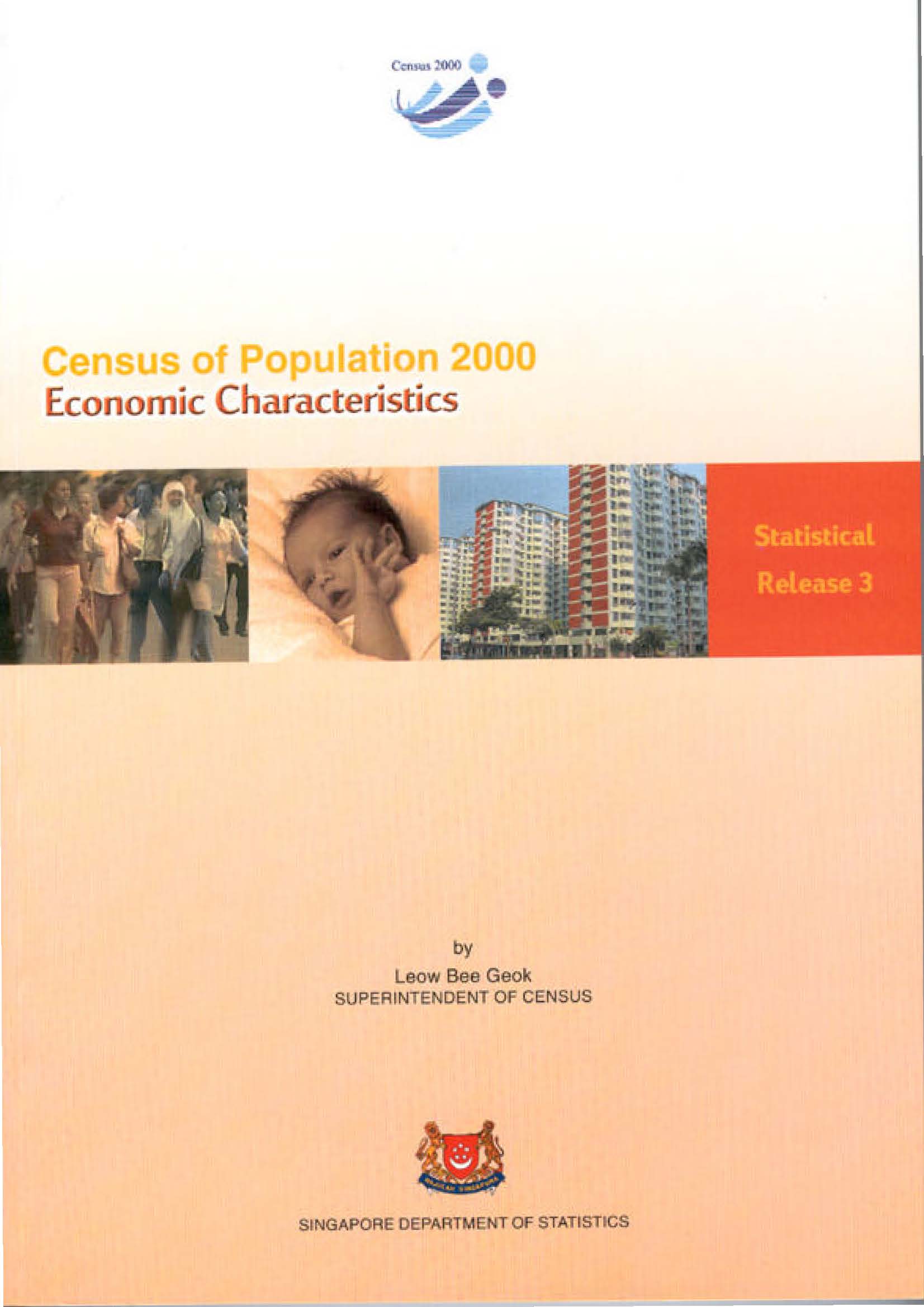 This publication focuses on the economic characteristics of the Singapore resident population in the year 2000 and highlights the changes during the decade. The Release has a total of 61 detailed statistical tables, 2-page of key indicators and a write-up on Census concepts and definitions.