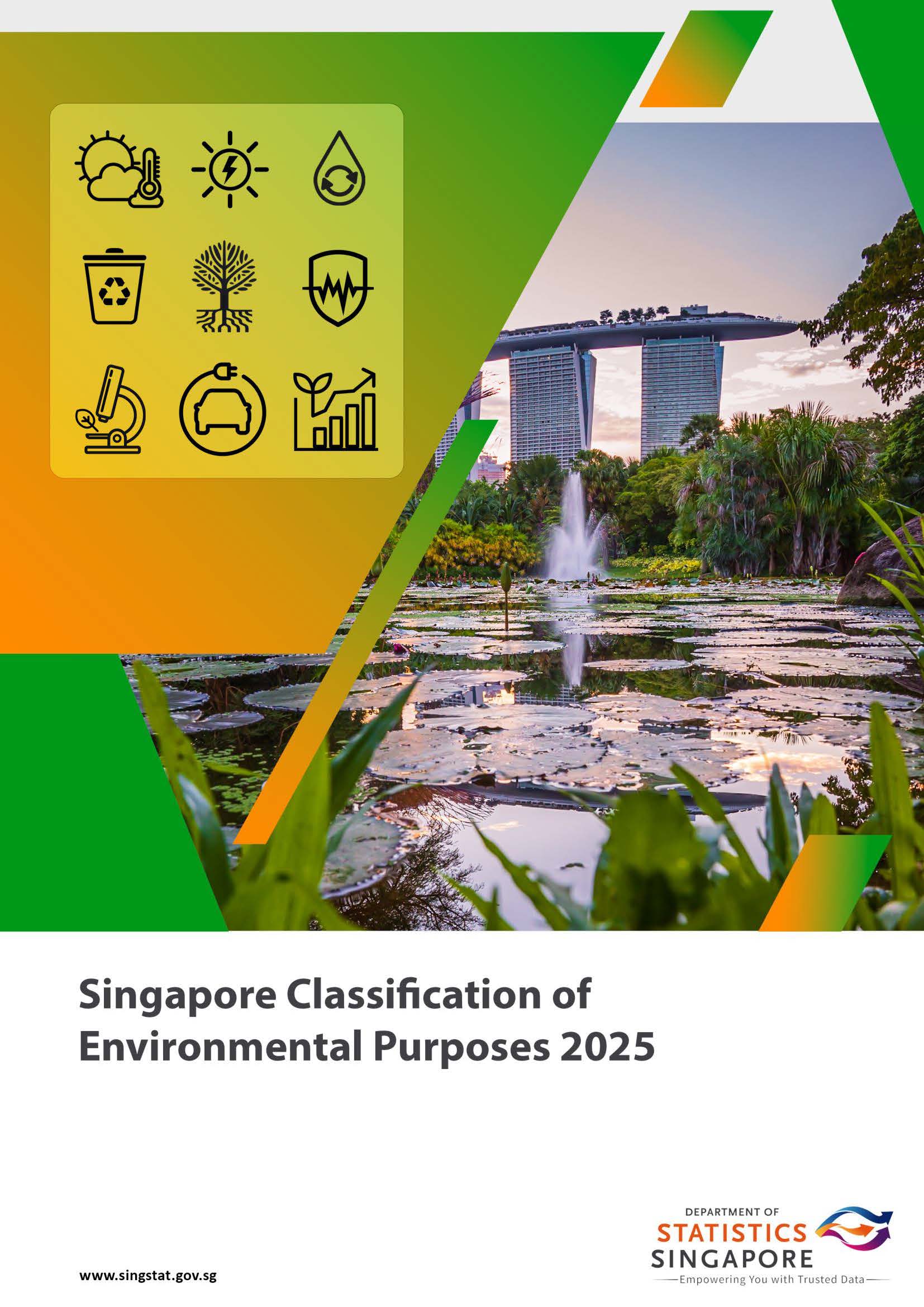 The Singapore Classification of Environmental Purposes (S-CEP) 2025 is designed for use in the collection and compilation of data that require classifying environmental activities and products, such as the Environmental Goods and Services Sector (EGSS) Accounts and other environmental-economic accounts. The S-CEP 2025 is adapted from the Classification of Environmental Purposes (CEP) framework endorsed by the United Nations Statistical Commission and aligns with the System of Environmental-Economic Accounting Central Framework (SEEA CF).